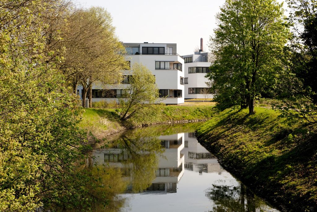 De Roerdelta is een oud industrieel gebied tussen Maas en Roer dichtbij het stadscentrum van Roermond, dat volop in ontwikkeling is. Net buiten dit gebied, aan de Voorstad St. Jacob, lag een oud wasserijcomplex langs de oever van de Roer. Op deze inspirerende plek ontwierpen wij twee urbanvilla’s met elk twaalf appartementen in het luxe segment. Geen gestapelde, telbare verzameling van appartementen, maar een plastiek dat lijkt op een sculptuur. Het witte stucwerk versterkt dit beeld. Door de bijzondere ligging en het unieke uitzicht zijn de appartementen ondanks de recessie in de bouw snel verkocht.